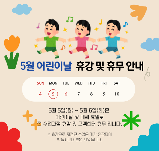 5/5(월)~5/6(화) 휴강 및 고객센터 휴무 안내