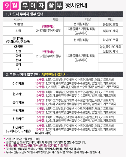 2015년 9월 무이자 할부 행사안내