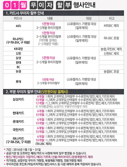 2016년 01월 무이자 할부 행사안내