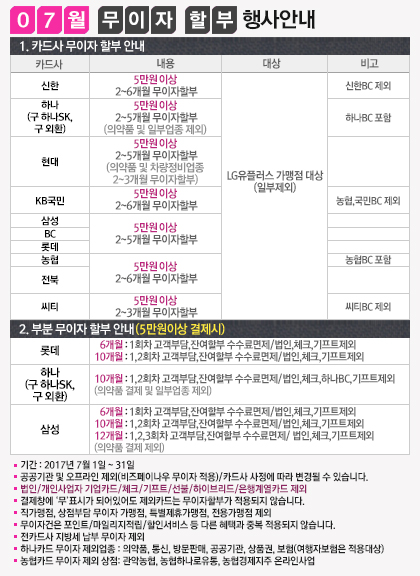 2017년 7월 신용카드 무이자 할부 행사 안내